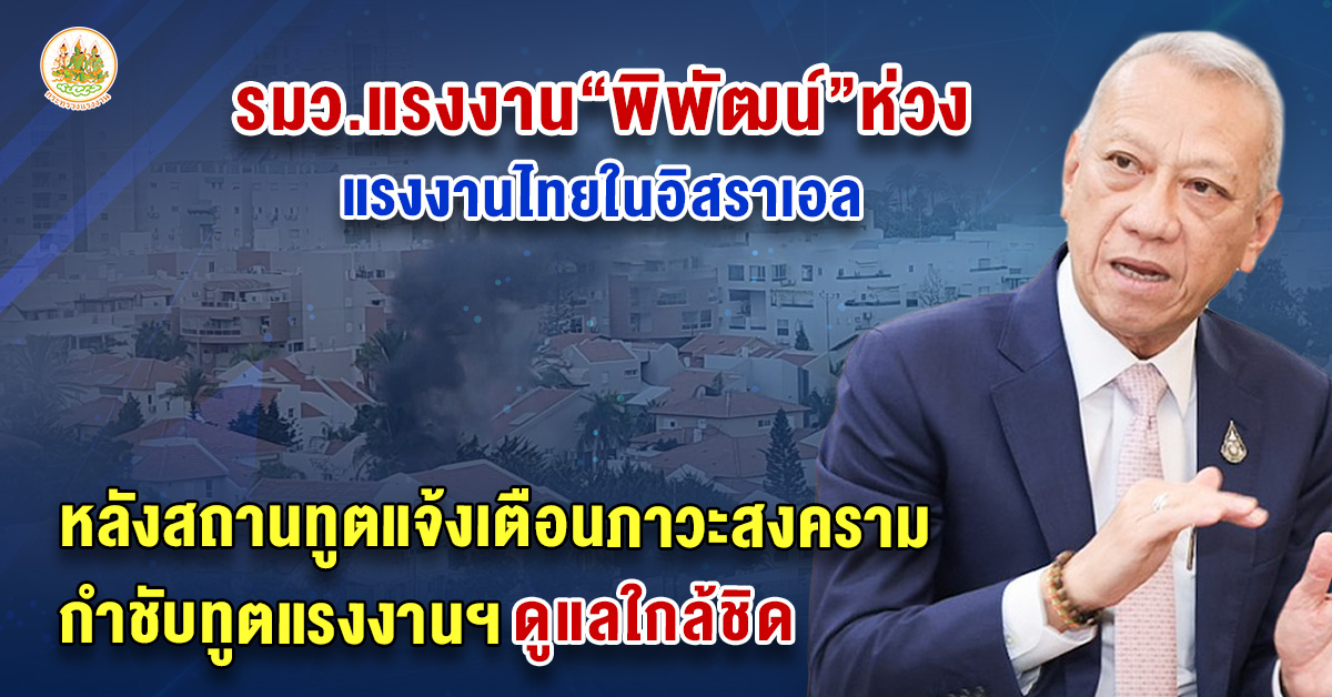 กรุงเทพฯ 7 ต.ค. – “พิพัฒน์” รมว.แรงงาน ห่วงแรงงานไทยในอิสราเอล หลังสถานทูตแจ้งเตือนภาวะสงคราม กำชับทูตแรงงานฯ ดูแลใกล้ชิด