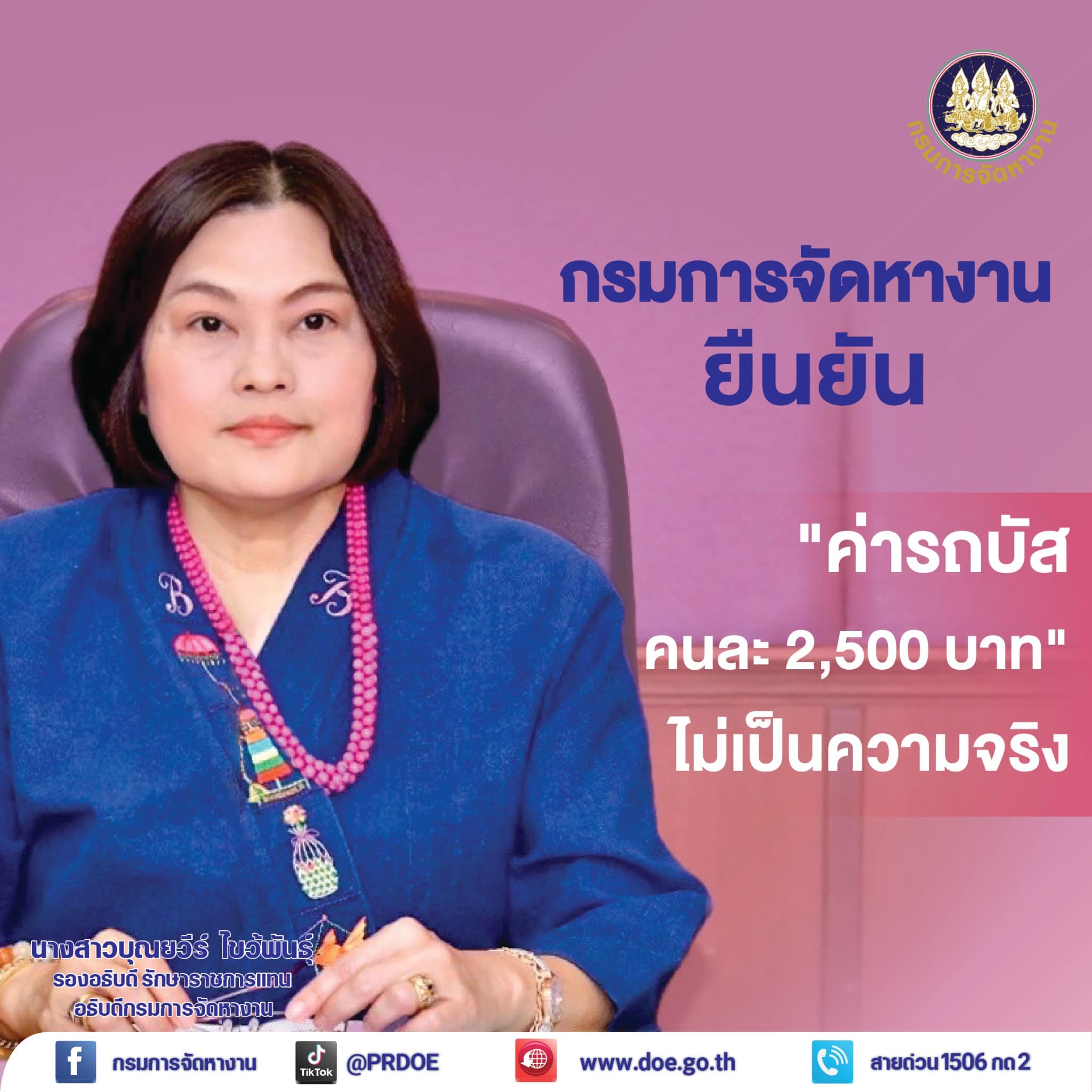 นางสาวบุณยวีร์ ไขว้พันธุ์ รองอธิบดี รักษาราชการแทนอธิบดีกรมการจัดหางาน เปิดเผยว่า จากกรณีสื่อออนไลน์ให้ข้อมูลเรื่องค่าใช้จ่ายในการไปทำงานที่อิสราเอล ของกรมการจัดหางาน เก็บค่ารถไปสนามบินสุวรรณภูมิ คนละ 2,500 บาท นั้น กรมการจัดหางาน ขอยืนยันว่าไม่เป็นความจริง โดยการเดินทางไปทำงานประเทศอิสราเอล ภายใต้โครงการ “ความร่วมมือไทย-อิสราเอล เพื่อการจัดหางาน” (TIC) มีการเก็บค่าใช้จ่ายเฉพาะที่จำเป็น ประมาณ 71,020 บาท (ขึ้นอยู่กับอัตราแลกเปลี่ยน) ดังนี้