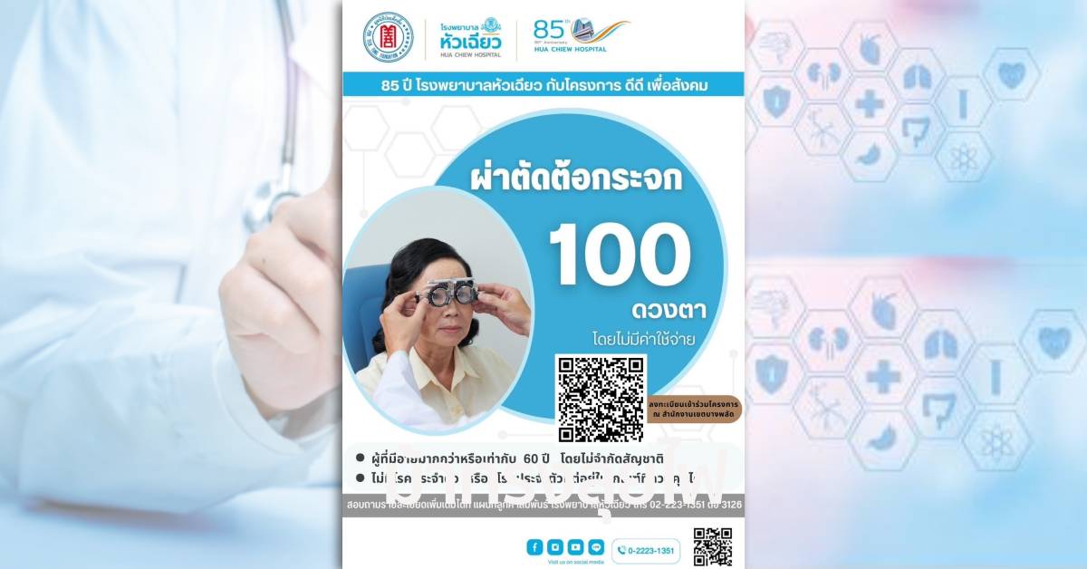 มูลนิธิป่อเต็กตึ๊ง และโรงพยาบาลหัวเฉียว ส่งมอบดวงตาสดใส คืนสู่สังคม ในโครงการ “ตรวจคัดกรองและผ่าตัดต้อกระจก 100 ดวงตา” รวมเป็นส่วนหนึ่งในการสร้างโอกาสเข้าถึงการรักษาโรคต้อกระจก ช่วยให้ผู้ป่วยได้รับการรักษาให้การมองเห็นกลับมาได้เป็นปกติ โดยได้รับการสนับสนุนงบประมาณจากมูลนิธิป่อเต๊กตึ๊ง จำนวน 2 ล้านบาท