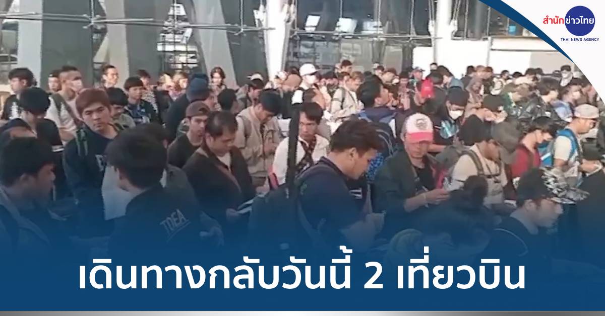 แรงงานไทยที่เดินทางกลับวันนี้ เที่ยวบิน Spice Jet จำนวน 320 คน เที่ยวบิน Arkia Flight จำนวน 184 คน มี ผู้บริหารระดับสูงกระทรวงแรงงาน และหน่วยงานราชการต่างๆ ร่วมอำนวยความสะดวกและแนะนำสิทธิในการช่วยเหลือเยียวยา เช่น กระทรวงการพัฒนาสังคมและความมั่นคงของมนุษย์ ดูแลกรณีแรงงานไม่มีเงินค่าเดินทางกลับภูมิลำเนา กระทรวงยุติธรรม ให้คำแนะนำการพักชำระหนี้ การไกล่เกลี่ยหนี้ ในส่วนของเจ้าหน้าที่จากกระทรวงแรงงานนั้น กรมการจัดหางานได้ตั้งโต๊ะให้คำแนะนำการยื่นคำร้องขอรับสิทธิประโยชน์จากกองทุนเพื่อช่วยเหลือคนหางานไปทำงานต่างประเทศ โดยทันทีที่มาถึงสนามบินสุวรรณภูมิ กระทรวงแรงงานได้จัดเจ้าหน้าที่ตั้งโต๊ะให้บริการคำแนะนำเกี่ยวกับการยื่นคำร้องขอรับสิทธิประโยชน์จากกองทุนเพื่อช่วยเหลือแรงงานไทยไปทำงานต่างประเทศ เพื่อให้แรงงานไทยได้รับเงินสิทธิประโยชน์ดังกล่าวโดยเร็วที่สุด