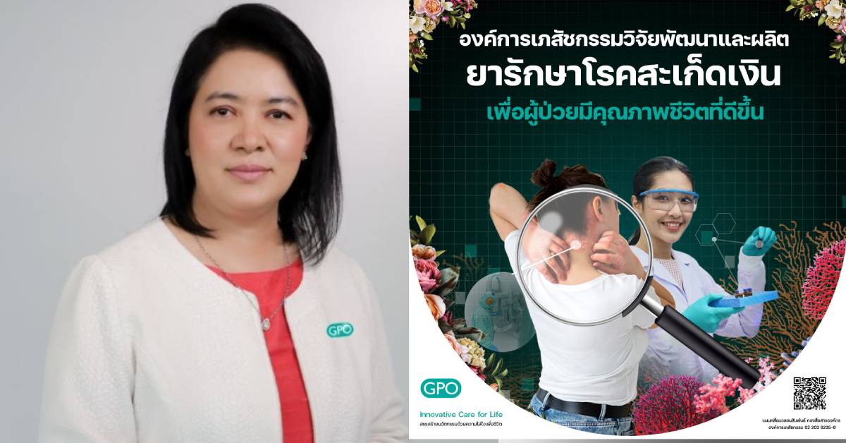 พญ.มิ่งขวัญ สุพรรณพงศ์ ผู้อำนวยการองค์การเภสัชกรรม กล่าวว่า โรคสะเก็ดเงิน (Psoriasis) จัดเป็นโรคผิวหนังเรื้อรัง โดยมีอาการแสดงที่สําคัญ คือ ผื่นแดง นูน ขอบเขตชัดเจน มีขุยหนาสีเงินปกคลุมที่เกิดจากเซลล์ผิวหนังมีการแบ่งตัวเพิ่มจำนวนอย่างรวดเร็วโดยไม่ทราบสาเหตุ บางรายเป็นตุ่มหนอง กระจายทั่วร่างกายและหนังศีรษะ มีเล็บผิดปกติร่วมด้วย โดยผื่นอาจมีอาการคันหรืออาจมีอาการข้ออักเสบผิดรูปร่วมด้วย นอกจากโรคสะเก็ดเงินจะมีอาการแสดงทางผิวหนังแล้ว ยังอาจพบร่วมกับโรคอื่น ๆ ได้ด้วย เช่น โรคเส้นเลือดหัวใจอุดตัน เบาหวาน ไขมันสูง อัมพฤกษ์ อัมพาต เป็นต้น ซึ่งโรคสะเก็ดเงินถือเป็นปัญหาสาธารณสุขที่สำคัญของประเทศไทย เนื่องจากเป็นโรคที่รักษาไม่หายขาด จะต้องใช้ยาในการประคับประคองอาการตลอดชีวิต ซึ่งยังไม่ทราบสาเหตุของการเกิดโรคที่แน่ชัด จากหลักฐานในปัจจุบันบ่งชี้ว่าน่าจะเกิดจากหลายปัจจัยร่วมกัน ได้แก่ พันธุกรรม ระบบภูมิคุ้มกันและปัจจัยกระตุ้นภายนอก โดยวิธีการรักษาโรคสะเก็ดเงิน มี 4 วิธีหลัก ได้แก่ 1. ยาทาภายนอก เช่น ยาทาสเตียรอยด์ ยาทากลุ่มวิตามินดี ยาทากลุ่มน้ำมันดิน และยาทา Dithranol (Anthralin) 2. ยารับประทาน เช่น Methotrexate Retinoid และCyclosporine 3. การฉายแสงอัลตร้าไวโอเลต เช่น Narrowband UVB และ PUVA และ 4. ยาฉีดชีวโมเลกุล เช่น Etanercept, Infliximab และ Ustekinumab เนื่องจากโรคสะเก็ดเงินเป็นโรคเรื้อรังที่ยังไม่ทราบสาเหตุชัดเจน และปัจจุบันยังไม่มีวิธีรักษาให้หายขาดได้ ดังนั้น ควรพิจารณาเลือกวิธีการรักษาที่ควบคุมผื่นได้ดี และมีผลข้างเคียงน้อยที่สุด