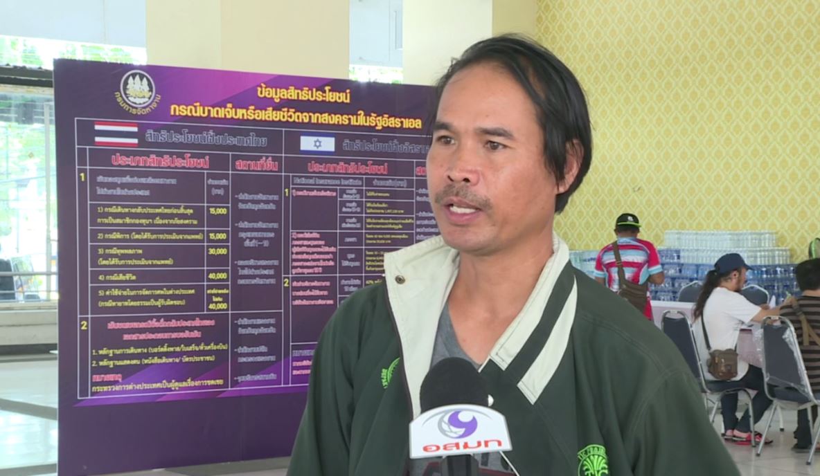 ที่ศูนย์ช่วยเหลือแรงงานและติดตามสถานการณ์ความไม่สงบในอิสราเอล กระทรวงแรงงาน ยังคงมีแรงงานไทยที่เดินทางกลับจากอิสราเอลเข้ายื่นคำร้องขอค่าเดินทางกลับจากอิสราเอล และลงทะเบียนขอรับสิทธิประโยชน์ กรณีต้องกลับประเทศจากเหตุภาวะสงคราม เพื่อขอรับเงินเยียวยาจากกองทุนเพื่อช่วยเหลือคนหางานไปทำงานในต่างประเทศ 15,000 บาท อย่างต่อเนื่อง