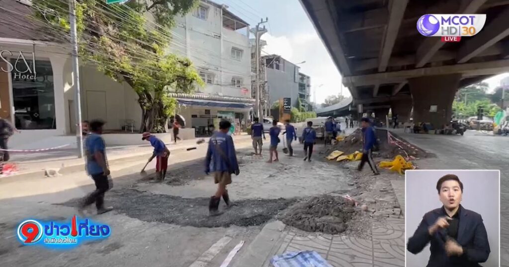เปิดการจราจรแยกมักกะสัน-จตุรทิศได้แล้ว หลังถนนทรุดตัว