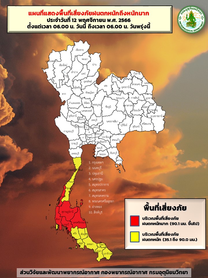 กทม. 12 พ.ย.- กรมอุตุฯ เผยภาคเหนือ ตะวันออก ภาคกลาง ฝนฟ้าคะนองและลมกระโชกแรง เตือนภาคใต้ฝนตกหนักถึงหนักมาก