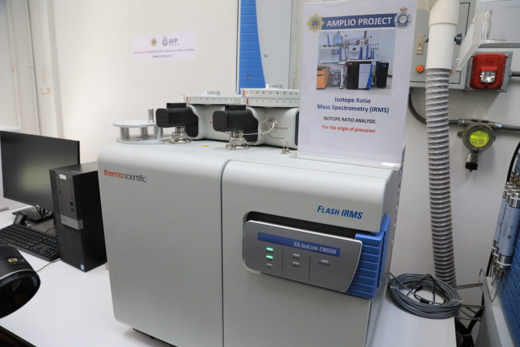 AFP ได้จัดทำโครงการ AMPLIO ร่วมกับสำนักงาน ป.ป.ส. ซึ่งได้รับการสนับสนุนงบประมาณจากรัฐบาลออสเตรเลีย เป็นระยะเวลา 4 ปี (พ.ศ.2563 – 2567 ) โดยเป็นเงินงบประมาณกว่า 53 ล้านบาท เพื่อดำเนินกิจกรรมในความร่วมมือด้านการตรวจพิสูจน์ยาเสพติด โดยเครื่องมือที่มอบให้ สำนักงาน ป.ป.ส. ในวันนี้เป็นเครื่องวัดอัตราส่วนไอโซโทปเสถียร แมสสเปกโตรเมทรี (Isotope Ratio Mass Spectrometry : IRMS) จำนวน 1 เครื่อง ใช้สำหรับวิเคราะห์แหล่งที่มาของสารตั้งต้น และยืนยันแหล่งผลิตยาเสพติด โดยเครื่อง IRMS นี้ นับเป็นเครื่องที่ 5 ที่มีใช้ในประเทศไทย แต่เป็นเครื่องแรกที่นำมาประยุกต์ใช้กับการตรวจพิสูจน์ยาเสพติด ราคาประมาณ 30 ล้านบาท และเครื่องแก๊สโครมาโทกราฟ แมสสเปกโตรเมทรี (Gas Chromatograph Mass Spectrometry : GCMS) ใช้สำหรับตรวจพิสูจน์ชนิดและรูปแบบของสารปนเปื้อนที่เกิดจากกระบวนการสังเคราะห์และจากอุปกรณ์ที่ใช้ในแหล่งผลิตยาเสพติด วิเคราะห์ไอซ์ จำนวน 1 เครื่อง และยาบ้า จำนวน 1 เครื่อง พร้อมด้วย วัสดุ อุปกรณ์ สารมาตรฐาน ที่ใช้สำหรับตรวจพิสูจน์ยาเสพติด จำนวน 75 รายการ จำนวนรวมกว่า 40 ล้านบาท โดยเครื่องมือดังกล่าวได้ติดตั้งที่สถาบันวิชาการและตรวจพิสูจน์ยาเสพติด สำนักงาน ป.ป.ส. (ทุ่งสองห้อง) กทม. ซึ่งเป็นหนึ่งในสถานตรวจพิสูจน์ยาเสพติดของประเทศไทย และมีฐานข้อมูลลักษณะเฉพาะของยาเสพติด (Drug Profile) โดยเฉพาะไอซ์และยาบ้าที่เป็นระบบ ถูกต้องและแม่นยำที่สุดในภูมิภาคลุ่มแม่น้ำโขง
