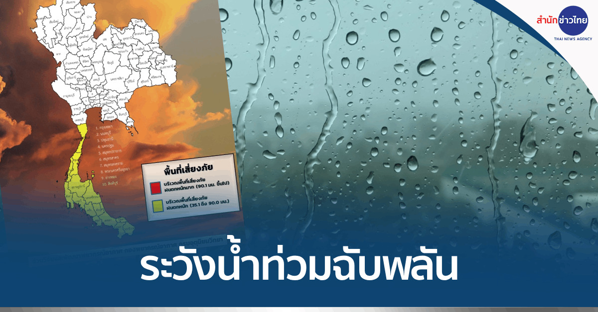 ภาคใต้ (ฝั่งตะวันตก) : มีฝนฟ้าคะนอง ร้อยละ 60 ของพื้นที่ และมีฝนตกหนักบางแห่ง บริเวณจังหวัดระนอง พังงา ภูเก็ต กระบี่ ตรัง และสตูลอุณหภูมิต่ำสุด 23-25 องศาเซลเซียส อุณหภูมิสูงสุด 31-32 องศาเซลเซียส ลมตะวันออก ความเร็ว 15-30 กม./ชม. ทะเลมีคลื่นสูงประมาณ 1 เมตร ห่างฝั่งคลื่นสูง 1-2 เมตร บริเวณที่มีฝนฟ้าคะนองคลื่นสูงมากกว่า 2 เมตร .-สำนักข่าวไทย