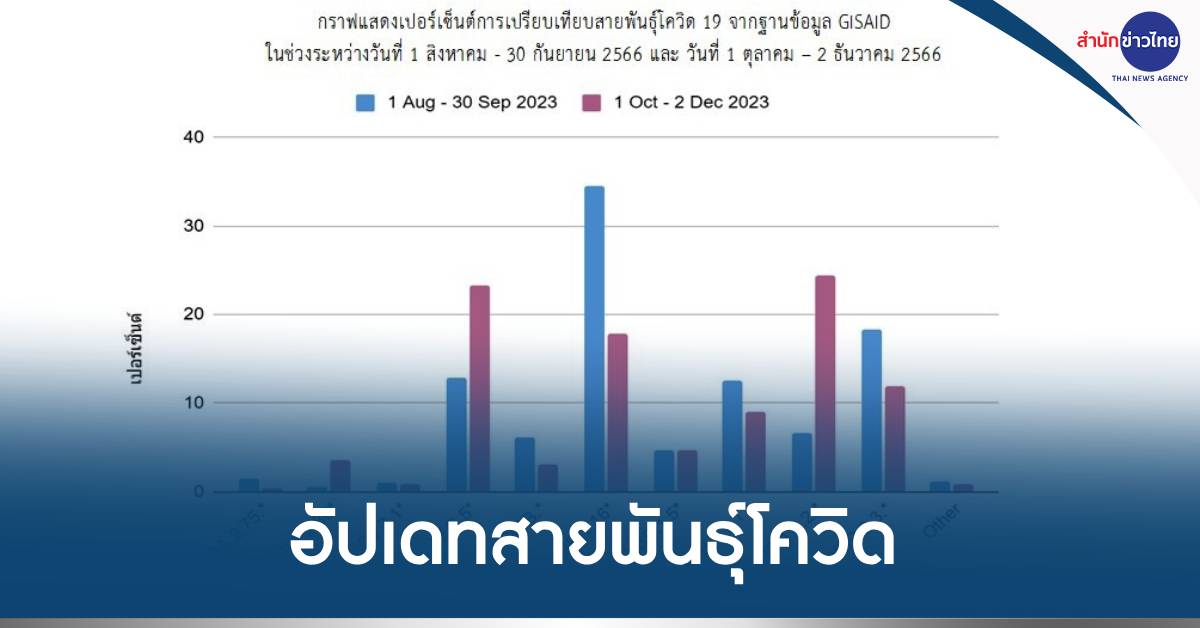 สถานการณ์โดยรวมของประเทศไทยในปัจจุบัน พบว่า สัดส่วนของสายพันธุ์ EG.5* และ XBB.1.92* มีแนวโน้มเพิ่มขึ้น ในขณะที่สัดส่วนของสายพันธุ์ XBB.1.16* กับ XBB.2.3* มีแนวโน้มลดลง เมื่อเทียบกับช่วงสองเดือนก่อนหน้า