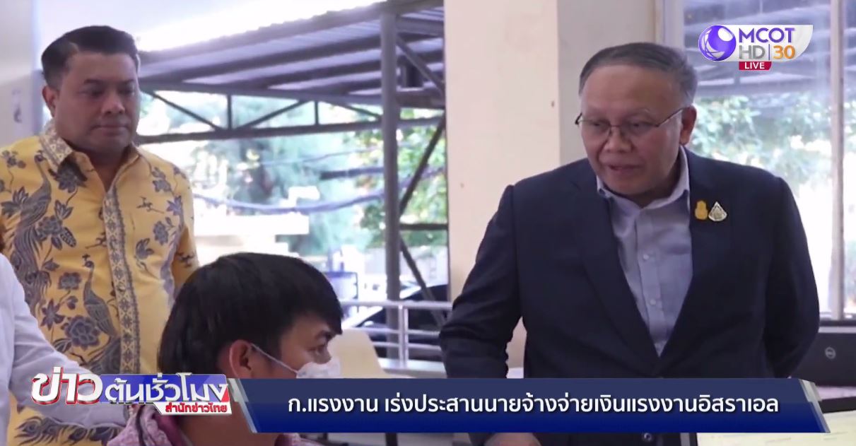 กรุงเทพฯ 19 ธ.ค. – ผู้ช่วย รมว.แรงงาน ให้กำลังใจแรงงานไทยจากอิสราเอล ลงทะเบียนรับเงินเยียวยา 5 หมื่นบาท พบบางรายยังได้ค่าจ้างไม่ครบ สั่งหน่วยงานที่เกี่ยวข้องเร่งประสานนายจ้างจ่ายเงิน