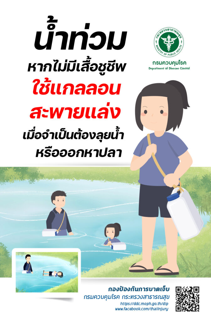 สธ. 28 ธ.ค. – กรมควบคุมโรค ห่วงใยสุขภาพประชาชนในพื้นที่น้ำท่วมภาคใต้ ขอให้เฝ้าระวังและติดตามสถานการณ์อย่างต่อเนื่องพร้อมแนะวิธีป้องกันโรคและภัยสุขภาพที่มากับน้ำท่วมหรือน้ำป่าไหลหลาก สามารถปฏิบัติได้ทันที คือ รับประทานอาหารปรุงสุก ร้อนสะอาด หากต้องลุยน้ำควรใส่รองเท้าบูท และหากต้องโดยสารเรือหรือเดินทางทางน้ำต้องสวมเสื้อชูชีพทุกครั้ง หากไม่มีถังแกลลอนพลาสติกเปล่าปิดฝาผูกเชือก ขนาด 5 ลิตร สะพายแล่งแทนได้