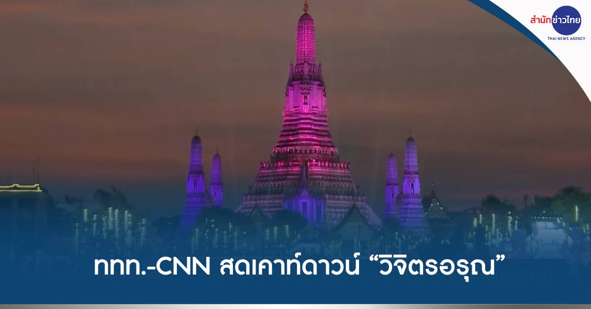 กทม. 31 ธ.ค.-ททท. จับมือ CNN ถ่ายทอดสดเคาท์ดาวน์ “วิจิตรอรุณ” ซึ่งวัดอรุณเป็นหนึ่งในจุดเคาท์ดาวน์สำคัญของโลก