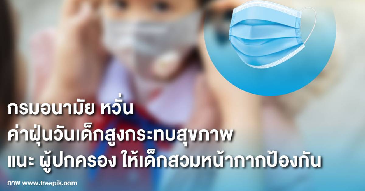 สธ. 12 ม.ค. – กรมอนามัย คาดการณ์แนวโน้มวันเด็กแห่งชาติ ค่าฝุ่นละอองขนาดเล็ก PM2.5 มีค่าฝุ่นสูงเกินมาตรฐาน อาจส่งผลกระทบต่อสุขภาพกับเด็ก ขอความร่วมมือผู้ปกครองให้เด็กสวมหน้ากากป้องกันอย่างเหมาะสม พร้อมให้ตรวจเช็คค่าฝุ่นก่อนออกจากบ้าน