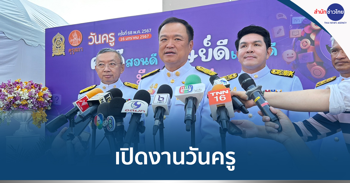 หอประชุมคุรุสภา ศธ.16 ม.ค.- “อนุทิน” เปิดงานวันครู ครั้งที่ 68 ภายใต้แนวคิด ครูสอนดี ศิษย์เรียนดี มีความสุข ย้ำสิ่งสำคัญในการทำหน้าที่ ครู คือการ “วางฐานคิด” ครูต้องสร้างศิษย์เป็นคนดี และคิดสร้างสรรค์ พร้อมมอบรางวัลและประกาศเกียรติคุณผู้ประกอบวิชาชีพทางการศึกษาเพื่อเป็นกำลังใจ