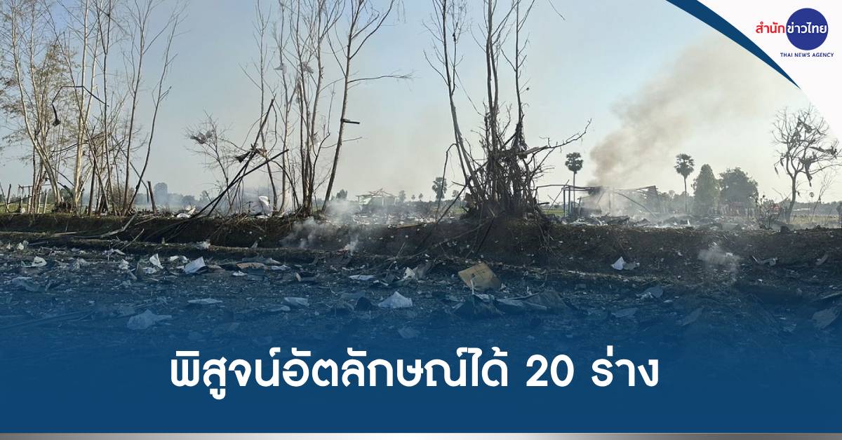 กทม. 18 ม.ค.-รมว.สาธารณสุข เผยเหตุโรงงานพลุระเบิด “สุพรรณบุรี” ล่าสุดมีรายงานผู้เสียชีวิต 23 ราย พิสูจน์อัตลักษณ์บุคคลได้ 20 ร่าง ดูแลเยียวยาจิตใจญาติสายตรงแล้ว 24 ราย พบเสี่ยงปัญหาด้านสุขภาพจิต 4 ราย