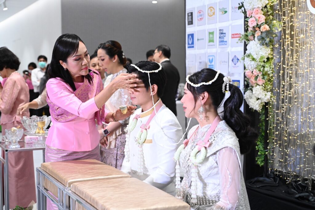ด้านคุณชมพล พรจินดารักษ์ อุปนายก 1 สมาคมผู้ค้าอัญมณีไทยและเครื่องประดับ กล่าวว่า สำหรับในปีนี้ยังได้สมาพันธ์สมาคมอัญมณี เครื่องประดับ และโลหะมีค่(ประเทศไทย)มาเป็นผู้สนับสนุนร่วมอีกด้วย ซึ่งทะเบียนสมรสสลักชื่อคู่สมรสลงบนแผ่นทองคำแท้ จำนวน 12 คู่ ถือเป็นของขวัญล้ำค่า ที่ไม่สามารถเทียบมูลค่าได้ แทนคำอวยพรจากสมาคมผู้ค้าอัญมณีไทยฯ และเป็นเครื่องหมายแห่งความรักของสามีภรรยา ที่พร้อมจะใช้ชีวิตร่วมกันเพื่อสร้างครอบครัว