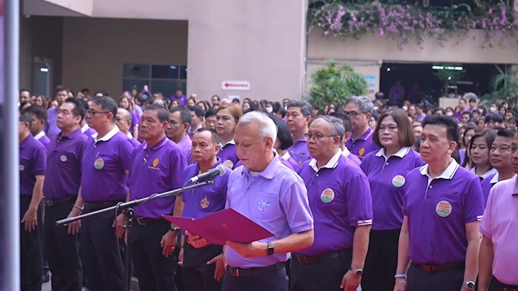 กรุงเทพฯ 16 ก.พ. – รมว.แรงงาน นำข้าราชการ เครือข่ายสหภาพแรงงาน องค์กรนายจ้าง สวมเสื้อสีม่วง แสดงพลังจงรักภักดี สำนึกในพระมหากรุณาธิคุณแด่กรมสมเด็จพระเทพฯ