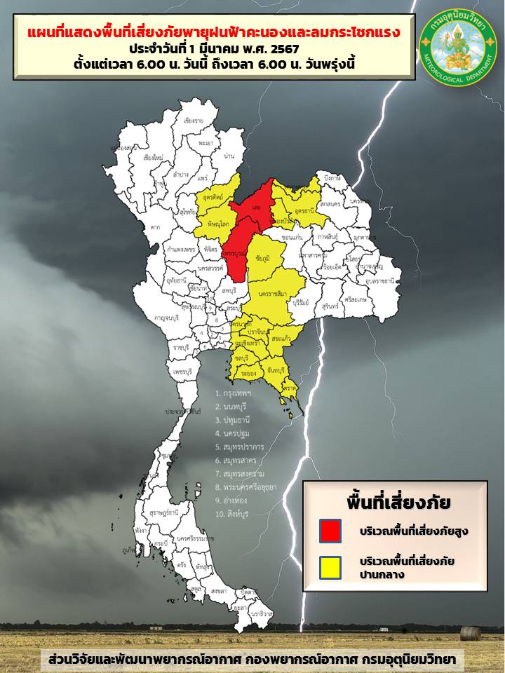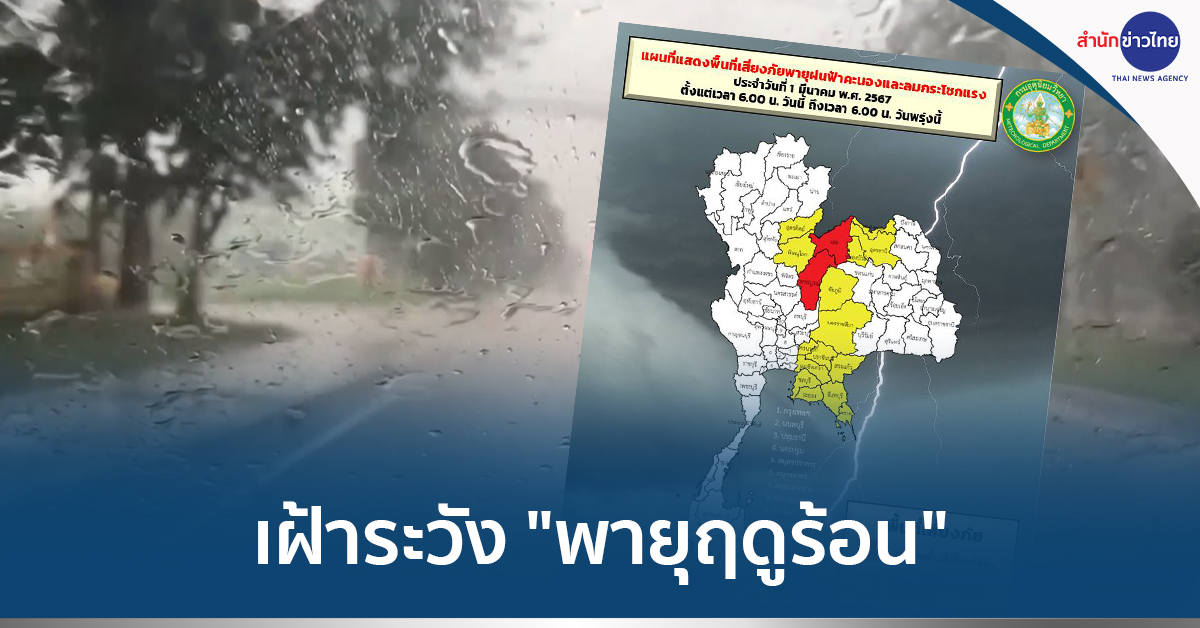 กทม. 1 มี.ค.- กรมอุตุฯ เตือนไทยตอนบนเฝ้าระวัง “พายุฤดูร้อน” ฝนฟ้าคะนอง ลมกระโชกแรง และลูกเห็บตกบางแห่ง รวมถึงฟ้าผ่าที่อาจเกิดขึ้นได้