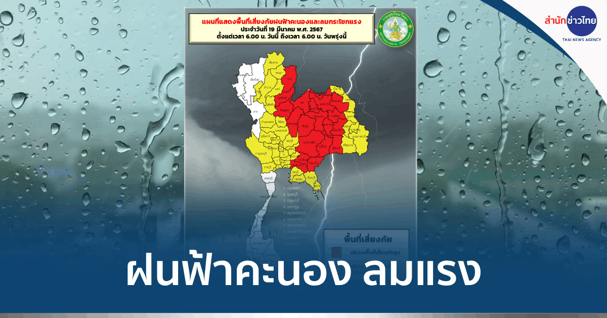 กรมอุตุนิยมวิทยาออกประกาศเตือน เรื่อง พายุฤดูร้อนบริเวณประเทศไทย ฉบับที่ 5 (64/2567) มีผลกระทบในช่วงวันที่ 19-20 มีนาคม 2567
