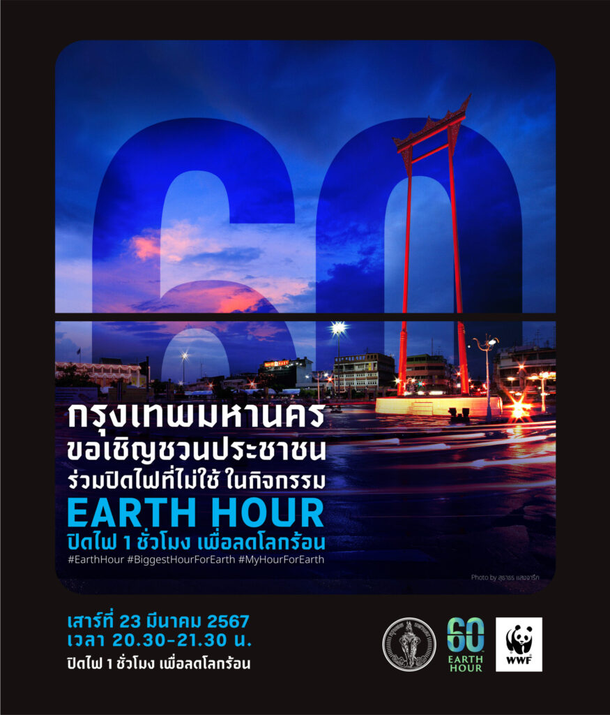 สำหรับในปี 2567 นี้ กรุงเทพมหานครได้เชิญชวนประชาชน ผู้ประกอบการ ร้านค้า และทุกภาคส่วนร่วมปิดไฟเชิงสัญลักษณ์ในกิจกรรม “ปิดไฟ 1 ชั่วโมง เพื่อลดโลกร้อน (60+ Earth Hour 2024)” ในวันเสาร์ที่ 23 มีนาคม 2567 ระหว่างเวลา 20.30 – 21.30 น. เพื่อร่วมแสดงพลังในการปิดไฟดวงที่ไม่จำเป็น เช่น ไฟประดับ ไฟอาคาร ป้ายโฆษณา ถอดปลั๊กเครื่องใช้ไฟฟ้าที่ไม่ใช้งาน ลดการใช้เครื่องปรับอากาศ เพื่อลดการใช้พลังงาน และลดปัญหาภาวะโลกร้อน ซึ่งนอกจากหน่วยงานภาคีเครือข่ายด้านสิ่งแวดล้อมแล้ว กรุงเทพมหานครยังได้ประสานสถานที่สำคัญในกรุงเทพฯ เข้าร่วมปิดไฟเชิงสัญลักษณ์ จำนวน 5 แห่ง ได้แก่ พระบรมมหาราชวัง (วัดพระศรีรัตนศาสดาราม) วัดอรุณราชวรารามราชวรมหาวิหาร สะพานพระราม 8 เสาชิงช้า และภูเขาทอง (วัดสะเกศราชวรมหาวิหาร) โดยแนวทางการสื่อสารผ่านโซเชียลมีเดียนั้น ทุกหน่วยงานที่เข้าร่วมกิจกรรมจะสื่อสารในทิศทางเดียวกันกับที่องค์การ WWF กำหนด คือใช้แฮชแท็ก #EarthHour #BiggestHourForEarth #MyHourForEarth เพื่อร่วมเชื่อมโยงคนทั้งโลกและแสดงให้เห็นศักยภาพของชาวไทย