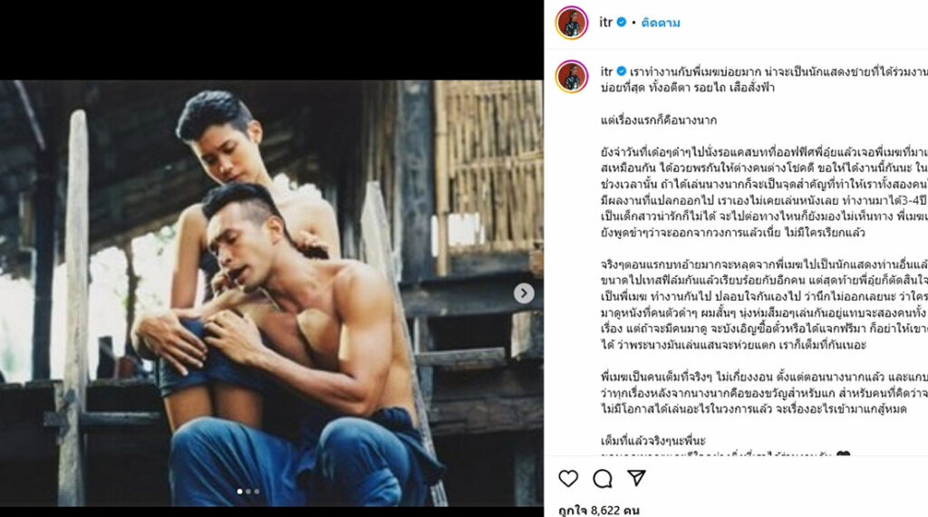 นางเอกคู่บุญ “ทราย เจริญปุระ” ออกมาโพสต์ภาพคู่ “เมฆ วินัย” พร้อมเขียนข้อความไว้อาลัยเป็นครั้งสุดท้ายว่า “ทำงานกับพี่เมฆบ่อยมาก น่าจะเป็นนักแสดงชายที่ได้ร่วมงานกันบ่อยที่สุด ทั้งอตีตา รอยไถ เสือสั่งฟ้า แต่เรื่องแรกก็คือนางนาก ตอนแรกบทอ้ายมากจะหลุดจากพี่เมฆไปเป็นนักแสดงท่านอื่นแล้ว แต่สุดท้ายก็เป็นพี่เมฆ ทำงานกันไป ปลอบใจกันเองไป ว่าใครจะมาดูหนังที่คนตัวดำๆ ผมสั้นๆ นุ่งห่มสีมอๆ เล่นกันอยู่แทบจะสองคนทั้งเรื่อง พี่เมฆเป็นคนเต็มที่จริงๆ ไม่เกี่ยงงอน ตั้งแต่ตอนนางนากแล้ว และแกบอกว่าทุกเรื่องหลังจากนางนาก คือ ของขวัญสำหรับแก สำหรับคนที่คิดว่าจะไม่มีโอกาสได้เล่นอะไรในวงการแล้ว จะเรื่องอะไรเข้ามาแกสู้หมด พร้อมทิ้งท้ายว่า “เต็มที่แล้วจริงๆนะพี่นะ ขอบคุณมากๆ และดีใจอย่างยิ่งที่เราได้ร่วมงานกัน”