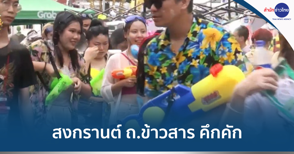 ถนนข้าวสาร 13 เม.ย. – บรรยากาศสงกรานต์ถนนข้าวสาร ยิ่งค่ำยิ่งคึกคัก มีนักท่องเที่ยวทั้งชาวไทยและชาวต่างชาติทยอยเดินทางมาเล่นน้ำสงกรานต์เป็นจำนวนมาก.-สำนักข่าวไทย