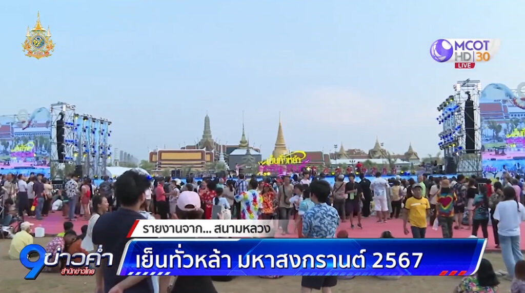 กทม. 15 เม.ย. – งานเย็นทั่วหล้า มหาสงกรานต์ 2567 ที่สนามหลวง คึกคัก แห่ชมไฮไลต์เวทีคอนเสิร์ตมีฉากหลังเป็นวัดพระแก้ว และการแสดงโดรนแปรอักษร 1,200 ลำ ส่วนโซนเล่นน้ำ มีระบำน้ำพุบกสูงที่สุดในไทย