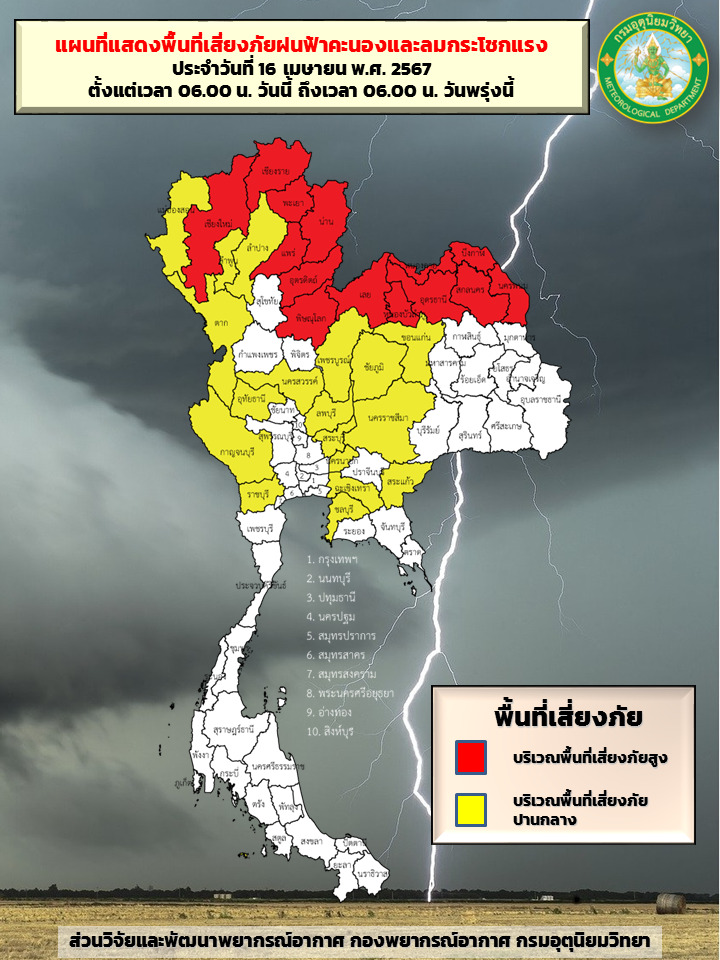 กทม. 16 เม.ย.- กรมอุตุฯ เผยประเทศไทยอากาศร้อนถึงร้อนจัด เตือนไทยตอนบนมีฝนฟ้าคะนอง ลมกระโชกแรง และมีลูกเห็บตกเกิดขึ้นได้บางพื้นที่