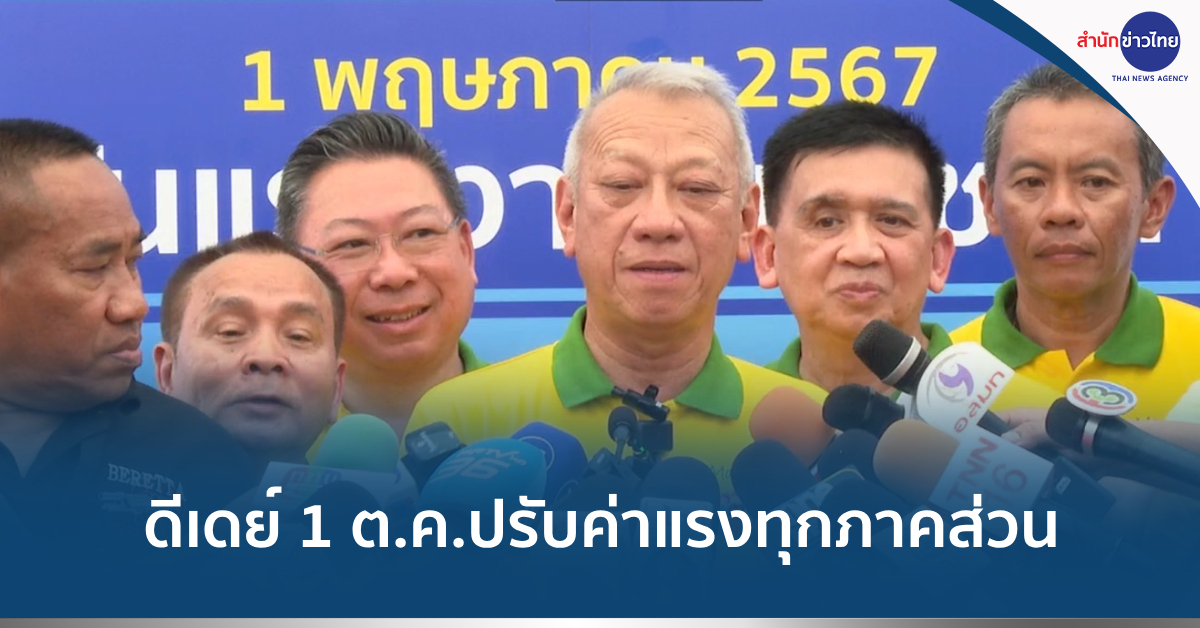 กรุงเทพฯ 1 พ.ค. – รมว.แรงงาน ประกาศ 1 ต.ค.นี้ ดีเดย์ปรับขึ้นค่าแรงทุกภาคส่วนเป็น 400 บาทต่อวัน พร้อมเดินหน้าสานต่อ 600 บาทต่อวัน ด้าน “อนุทิน” ย้ำนโยบายนี้สำคัญไม่แพ้ดิจิทัลวอลเล็ต