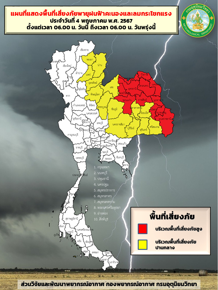 กรมอุตุนิยมวิทยา เผยความกดอากาศต่ำเนื่องจากความร้อนปกคลุมประเทศไทยตอนบน ลักษณะเช่นนี้ทำให้ประเทศไทยมีอากาศร้อนถึงร้อนจัดโดยทั่วไป กับมีฟ้าหลัวในตอนกลางวัน ขอให้ประชาชนดูแลรักษาสุขภาพเนื่องจากสภาพอากาศที่ร้อนถึงร้อนจัด โดยหลีกเลี่ยงการทำงานหรือการประกอบกิจกรรมในที่โล่งแจ้งเป็นระยะเวลานานไว้ด้วย สำหรับคลื่นกระแสลมฝ่ายตะวันตกจากประเทศเมียนมาเคลื่อนผ่านปกคลุมภาคเหนือตอนบน และภาคตะวันออกเฉียงเหนือตอนบน ประกอบกับมีลมตะวันตกเฉียงใต้และลมใต้พัดปกคลุมประเทศไทยตอนบน ลักษณะเช่นนี้จะทำให้บริเวณดังกล่าวมีพายุฤดูร้อนเกิดขึ้น โดยมีลักษณะของพายุฝนฟ้าคะนอง ลมกระโชกแรง และลูกเห็บตก รวมถึงอาจมีฟ้าผ่าเกิดขึ้นได้ ขอให้ประชาชนระวังอันตรายจากพายุฝนฟ้าคะนอง ลมกระโชกแรง และลูกเห็บตก รวมถึงอันตรายจากฟ้าผ่าที่อาจเกิดขึ้นได้ โดยหลีกเลี่ยงการอยู่ในที่โล่งแจ้ง ใต้ต้นไม้ใหญ่ สิ่งปลูกสร้างและป้ายโฆษณาที่ไม่แข็งแรง สำหรับเกษตรกรควรเตรียมการป้องกันและระวังความเสียหายที่จะเกิดต่อผลผลิตทางการเกษตรไว้ด้วย