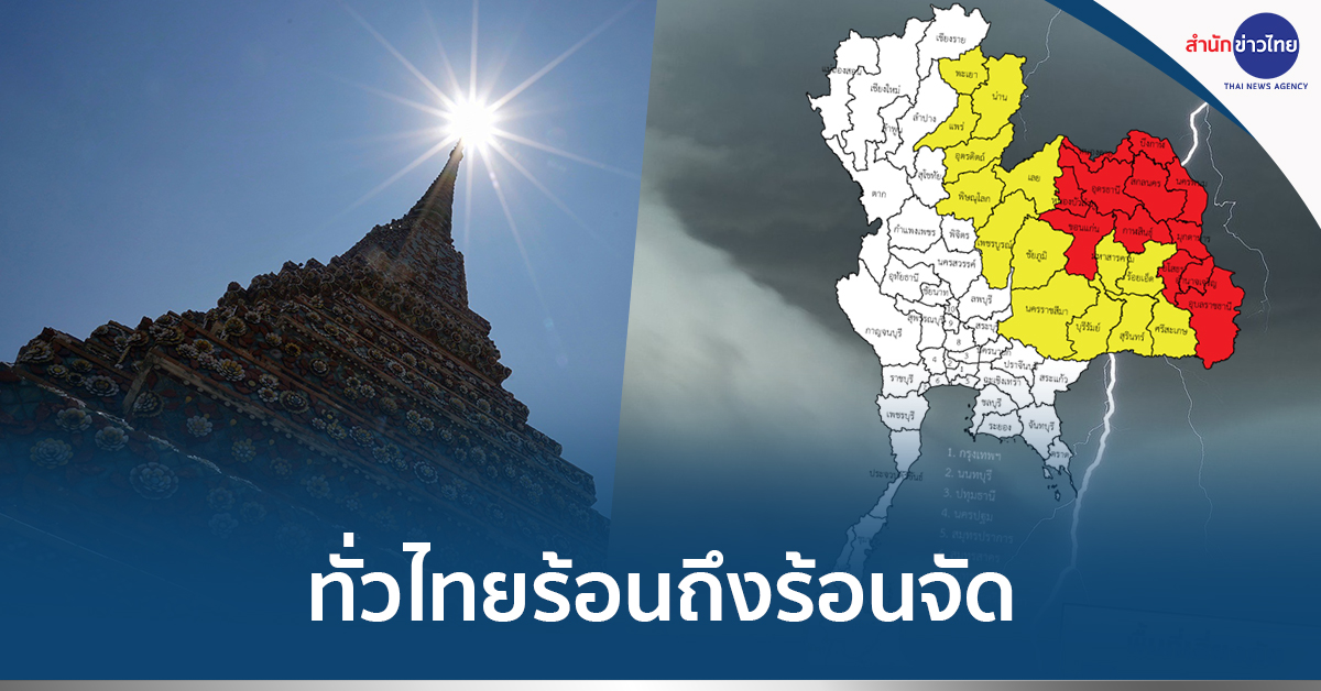 กทม. 4 พ.ค.- กรมอุตุฯ เผยอากาศยังร้อนถึงร้อนจัด เตือนไทยตอนบนเฝ้าระวัง “พายุฤดูร้อน” ฝนฟ้าคะนอง ลมกระโชกแรง และลูกเห็บตก