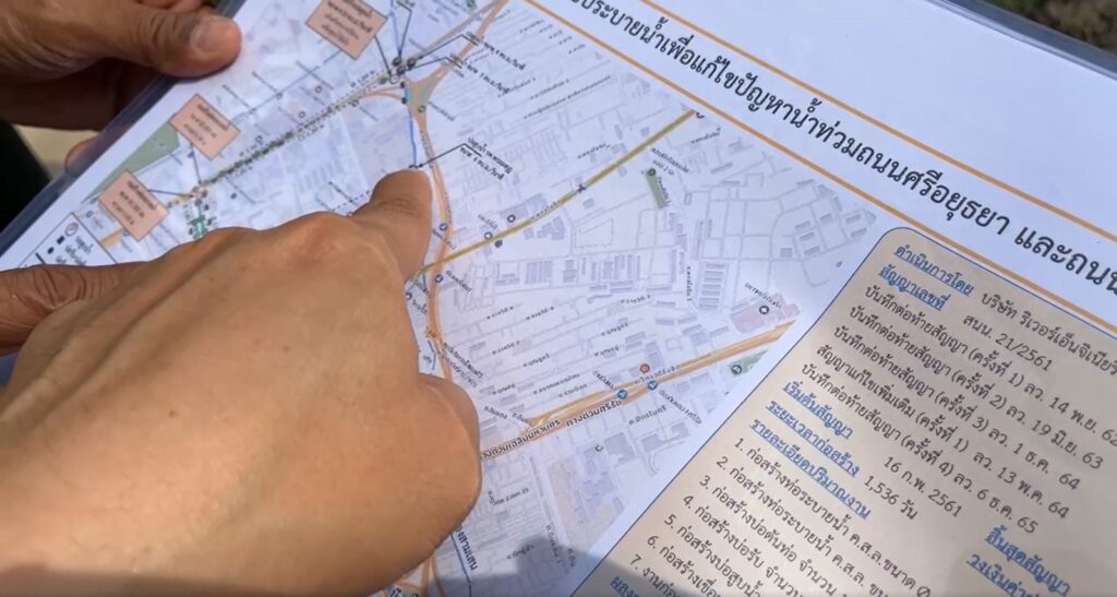 จากนั้น ผู้ว่าฯ กทม. และคณะ ลงพื้นที่จุดแรก คือ ถนนศรีอยุธยา บ่อสูบน้ำคูน้ำสารวัตรทหารที่ 11 ซึ่งเป็น 1 ใน 3 บ่อสูบ PIPE JACKING คือ ระบบที่ช่วยเพิ่มประสิทธิภาพของท่อระบายน้ำ ซึ่งถนนศรีอยุธยาถือว่าเป็นจุดที่มีน้ำท่วมเยอะพอสมควร โดยการดำเนินการระบบบ่อสูบมีความคืบหน้าไปแล้ว 90% และงานดันท่อเหลือการเชื่อมบรรจบท่อที่สำคัญ คาดว่าจะแล้วเสร็จภายใน 1 เดือน หากจุดนี้ดำเนินการเสร็จจะช่วยบรรเทาน้ำท่วมบริเวณ ถนนพระรามหก หน้ากระทรวงการต่างประเทศ โรงพยาบาลสงฆ์ สน.พญาไท เป็นต้น โดยจากการลงตรวจหน้างานในวันนี้ พบปัญหาที่ต้องแก้ไข เช่น มีขยะที่อาจเข้าไปติดในระบบ และงานในภาพรวมยังเรียบร้อยไม่ 100% ต้องเร่งปรับปรุงแก้ไขต่อไป