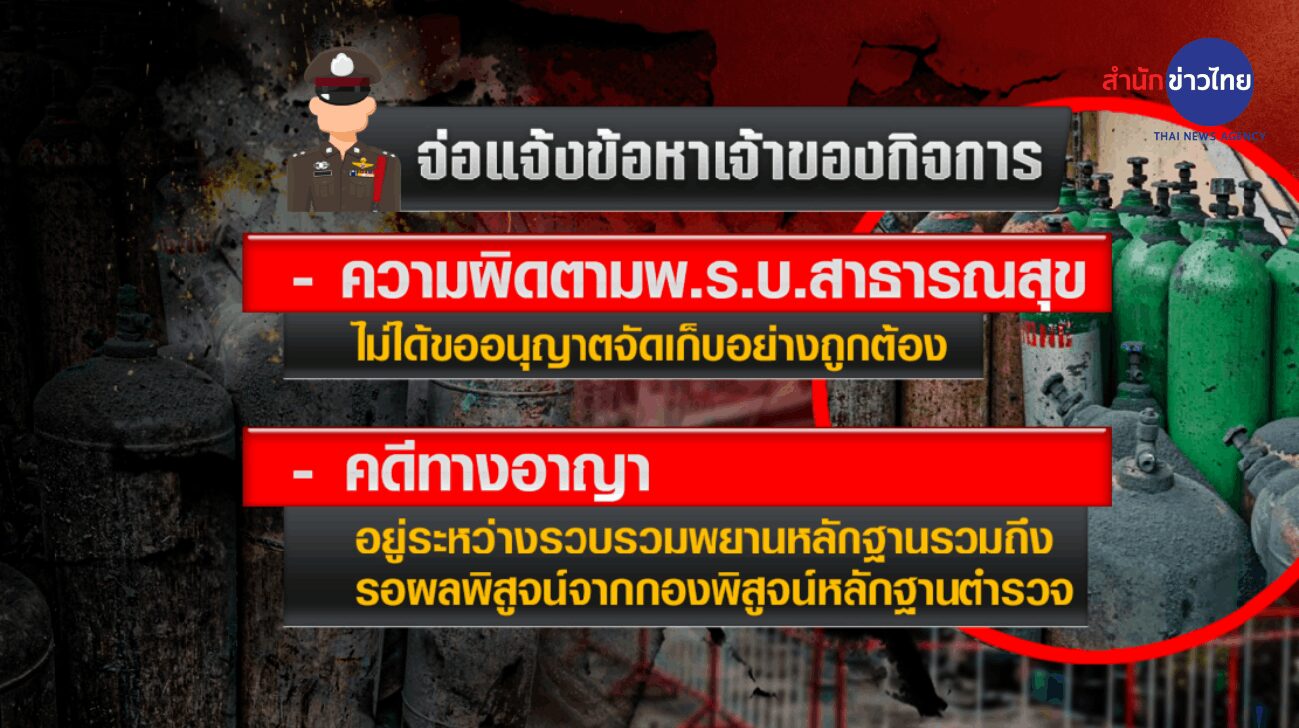 เบื้องต้นพบว่า เจ้าของกิจการไม่ได้ขออนุญาตดำเนินกิจการจัดเก็บทางเคมีอย่างถูกต้อง ซึ่งเจ้าหน้าที่เตรียมเอาผิดตาม พ.ร.บ.สาธารณะสุข ส่วนคดีอาญาตำรวจอยู่ระหว่างรวบรวมพยานหลักฐาน หลังจากเกิดเหตุเมื่อวานนี้ (23 พ.ค.) เจ้าหน้าที่ได้นำแผงเหล็ก มาปิดล้อมบริเวณที่เกิดเหตุ เพื่อไม่ให้บุคคลที่เกี่ยวข้องเข้าไปในพื้นที่ หวั่นจะเกิดเหตุอันตรายขึ้น