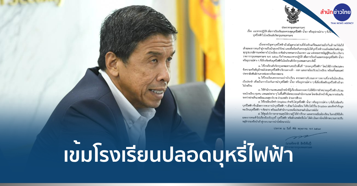 กรุงเทพฯ 1 มิ.ย. – “ผู้ว่าฯ ชัชชาติ” สั่งเข้ม 5 ข้อ โรงเรียน กทม. ต้องปลอดบุหรี่ไฟฟ้า