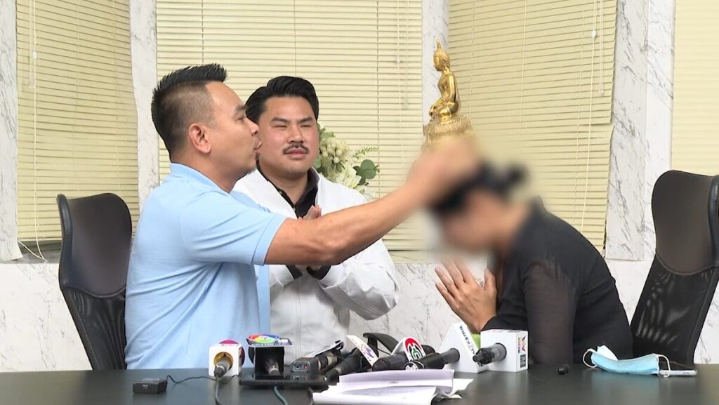 จากการนัดคู่กรณีเข้าพูดคุยไกล่เกลี่ย ฝ่ายหญิงเล่าว่า มีความรู้สึกเหมือนมีบางสิ่งครอบหัวตลอด โดนบีบจมูก บีบกราม บีบคอ โดยมือที่มองไม่เห็น จนหยุดหายใจและหมดสติที่ สปป ลาว รวมถึงมีร่องรอยเขียวช้ำและริ้วรอยขึ้นตามลำตัวและใบหน้า ส่วนที่ทราบว่าเป็นดาราชายคนดังกล่าวเพราะมีการส่งกระแสจิตมาว่า เป็นฝีมือของดาราชายคนนี้ ที่ผ่านมาเคยไปหาหมอ ขอใบรับรองแพทย์ และแจ้งความ ไปหาทั้งพระและคนที่คิดว่ามีวิชาอาคม รวมถึงหมอปลา แต่ไม่มีใครช่วยได้ บอกว่าเป็นกรรม แม้ว่าจะพยายามติดต่อไปที่แอดมินเพจของดาราชาย เพื่อขอคุยด้วยและขอความช่วยเหลือจากดาราชาย แต่ก็ไม่ได้รับการช่วยเหลือจึงมาร้องขอความช่วยเหลือจาก กัน จอมพลัง
