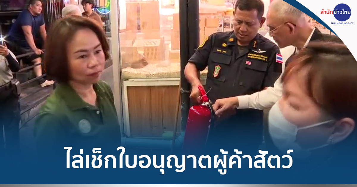 13 มิ.ย.- กทม.- กรมปศุสัตว์ บุกตลาดนัดจตุจักร ไล่เช็กใบอนุญาตผู้ค้าสัตว์และประกอบกิจการอันตรายต่อสุขภาพ