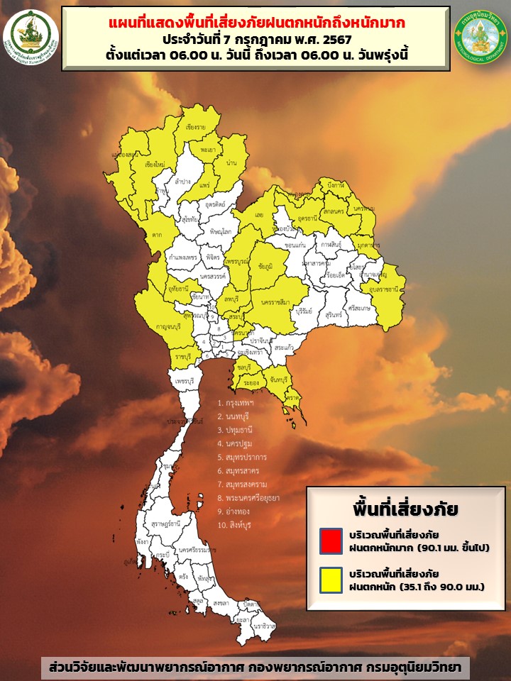 กทม. 7 ก.ค.- กรมอุตุฯ เตือนไทยตอนบนเตรียมรับมือฝนตกหนักบางแห่ง อาจเกิดน้ำท่วมฉับพลันและน้ำป่าไหลหลาก