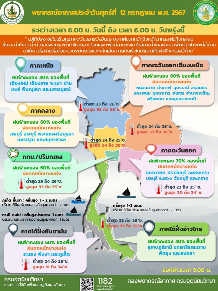 พยากรณ์อากาศรายภาค วันที่ 12 ก.ค.67