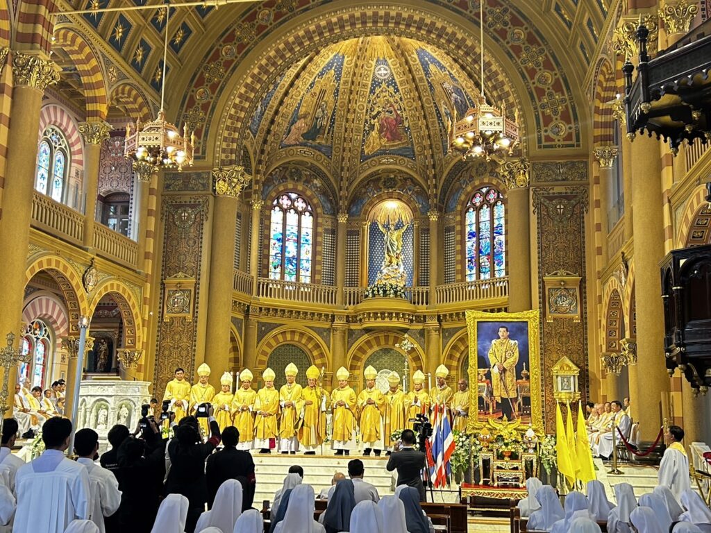 สภาประมุขบาทหลวงโรมันคาทอลิกแห่งประเทศไทย จัดพิธีอาเศียรวาท และพิธีบูชาขอบพระคุณเฉลิมพระเกียรติพระบาทสมเด็จพระเจ้าอยู่หัว เนื่องในโอกาสพระราชพิธีมหามงคลเฉลิมพระชนมพรรษา 6 รอบ 28 กรกฎาคม 2567 ณ อาสนวิหารอัสสัมชัญ เขตบางรัก กรุงเทพมหานคร โดยมีบิชอปทั้ง 11 เขตศาสนปกครอง อาร์ชบิชอปปีเตอร์ ไบรอัน เวลส์ เอกอัครสมณทูตนครรัฐวาติกันประจำประเทศไทย บิชอปฟรังซิสเซเวียร์ วีระ อาภรณ์รัตน์ เลขาธิการสภาประมุขบาทหลวงคาทอลิกแห่งประเทศไทย พร้อมด้วยบรรดาบาทหลวง นักบวชชาย-หญิง, นายชัยพล สุขเอี่ยม อธิบดีกรมการศาสนา, ดร.อภิชาต อินทรวิศิษฏ์ ผู้แทนฆราวาสคาทอลิก ผู้แทนส่วนราชการ และเอกชน รวมถึงสัตบุรุษ มาร่วมพิธีเป็นจำนวนมาก