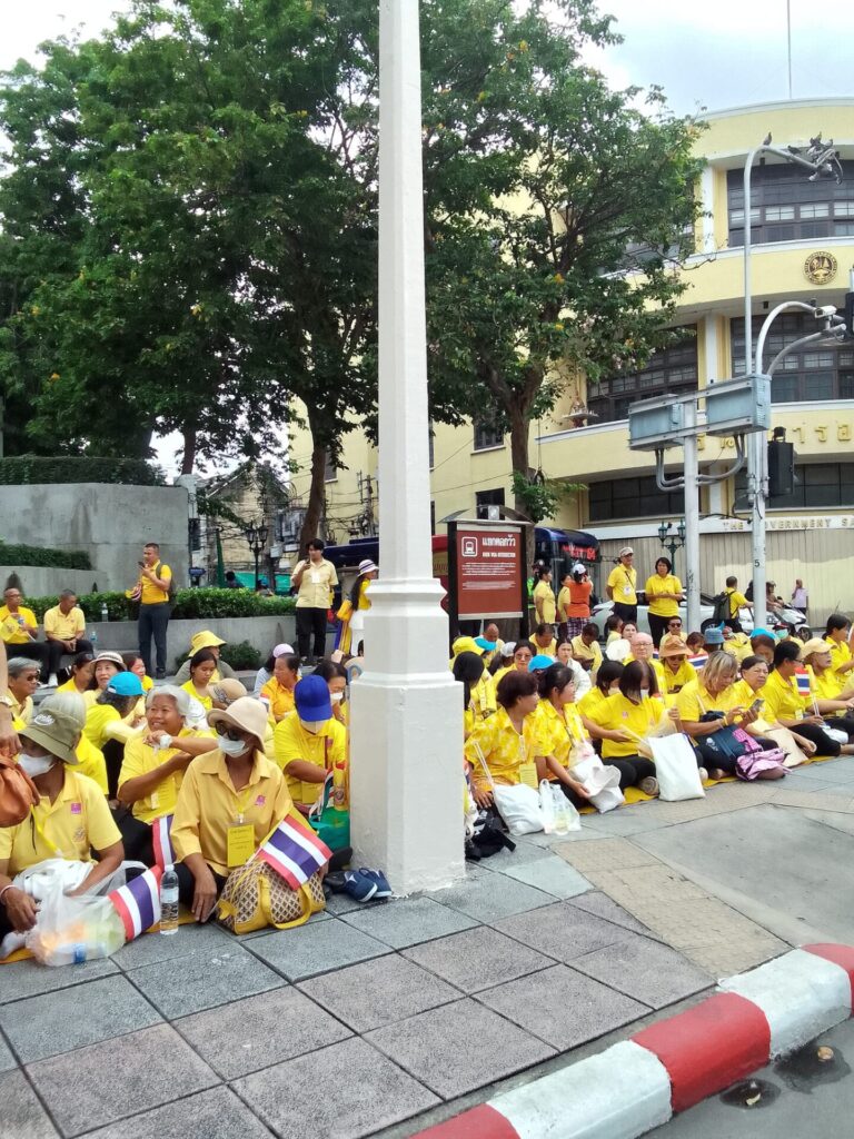 กทม. 28 ก.ค.-พสกนิกรจากทั่วสารทิศพร้อมใจกันแต่งกายสุภาพโทนสีเหลือง เฝ้าฯ รับเสด็จในหลวง-พระราชินี