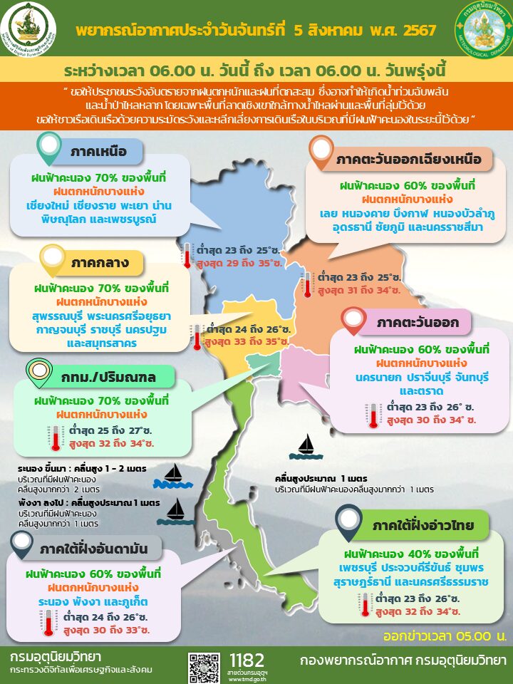 พยากรณ์อากาศรายภาค วันที่ 5 ส.ค.67