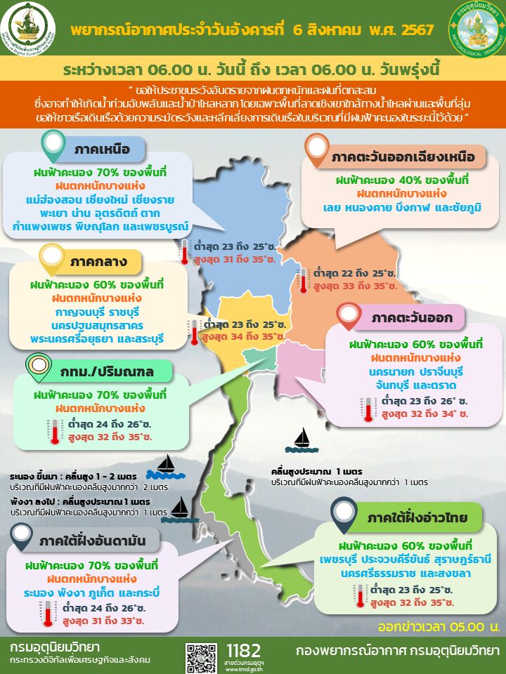 พยากรณ์อากาศรายภาค วันที่ 6 ส.ค.67