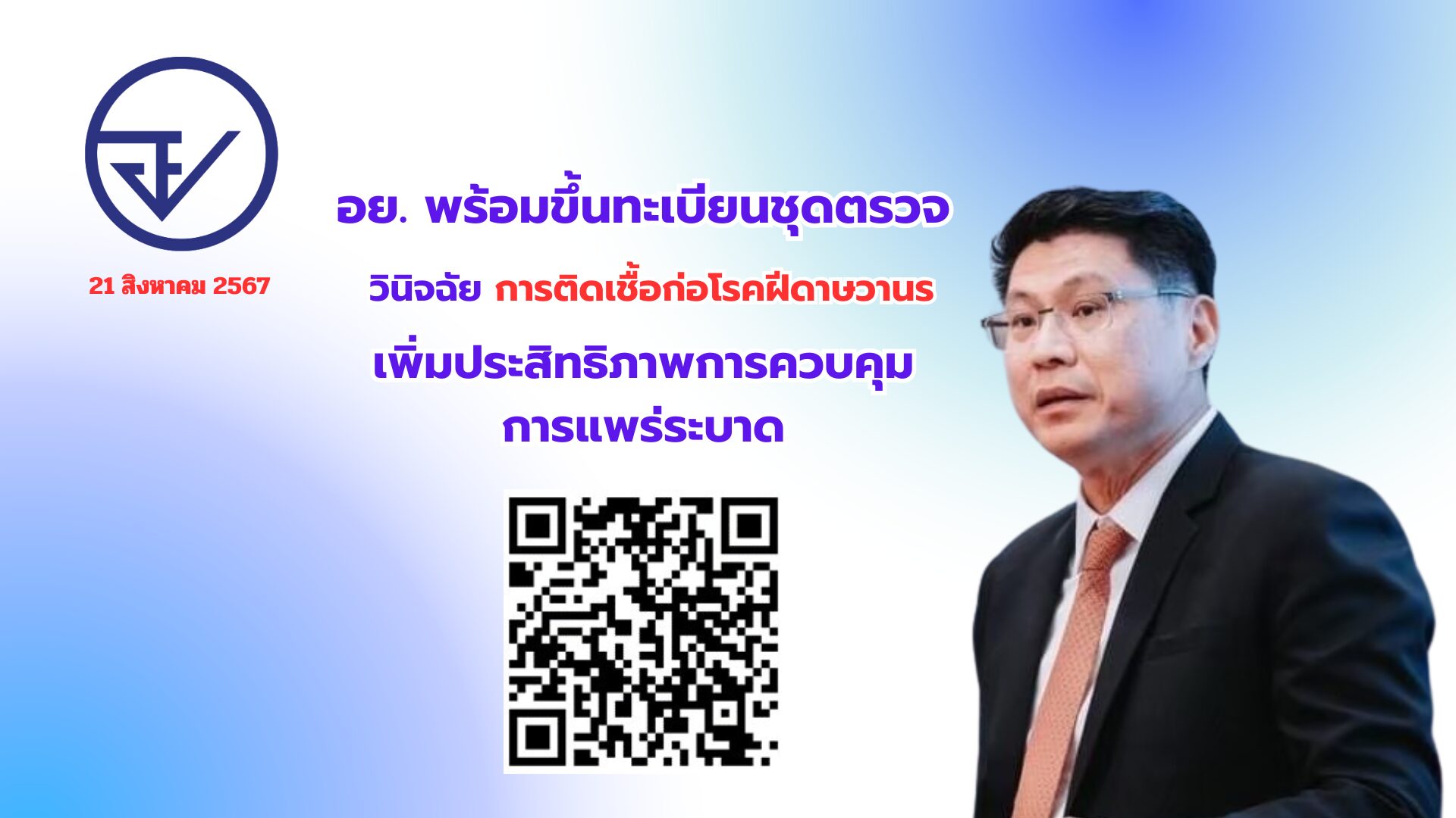 รองเลขาธิการฯ อย. กล่าวเพิ่มเติมว่า การมีชุดตรวจที่มีคุณภาพมาตรฐานในประเทศ จะช่วยลดภาระด้านสาธารณสุขในระยะยาว ด้วยการควบคุมและยับยั้งการแพร่ระบาดได้ตั้งแต่ระยะเริ่มต้น ซึ่งการตรวจพบและรักษาได้อย่างรวดเร็วจะช่วยลดจำนวนผู้ติดเชื้อใหม่ ป้องกันการแพร่กระจายของโรคสู่ชุมชน ทำให้ระบบสาธารณสุขของไทยมีความมั่นคงและพร้อมรับมือกับสถานการณ์โรคฝีดาษวานรในอนาคตได้อย่างมีประสิทธิภาพมากยิ่งขึ้น ทั้งนี้ อย. โดยศูนย์บริการผลิตภัณฑ์สุขภาพเบ็ดเสร็จได้เปิดจุดบริการเฉพาะสำหรับรองรับการขึ้นทะเบียนชุดตรวจ เพื่อให้การบริการขึ้นทะเบียนเป็นไปอย่างสะดวกและรวดเร็ว สามารถศึกษารายละเอียดเพิ่มเติมได้ที่เว็บไซต์กองควบคุมเครื่องมือแพทย์ของ อย.