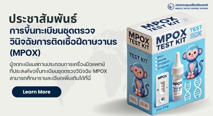 เภสัชกรเลิศชาย เลิศวุฒิ รองเลขาธิการคณะกรรมการอาหารและยา เปิดเผยว่า ภายหลังองค์การอนามัยโลก (WHO) ได้ประกาศให้โรคฝีดาษวานรเป็นสถานการณ์ฉุกเฉินด้านสาธารณสุขระหว่างประเทศ (PHEIC) สำนักงานคณะกรรมการอาหารและยา (อย.) จึงได้เตรียมความพร้อมในการขึ้นทะเบียนชุดตรวจวินิจฉัยการติดเชื้อฝีดาษวานร (MPOX) เพื่อรองรับสถานการณ์ โดยจัดทำแนวทางการประเมินด้านคุณภาพ มาตรฐาน และความปลอดภัยของชุดตรวจวินิจฉัยฝีดาษวานร มีเป้าหมายเพื่อให้ผู้ผลิตและผู้นำเข้าชุดตรวจสามารถจัดเตรียมเอกสารที่จำเป็นได้อย่างถูกต้องและสอดคล้องกับข้อกำหนด เช่น รายงานการทดสอบประสิทธิภาพและความปลอดภัย มาตรฐานที่อ้างอิง ทำให้กระบวนการขึ้นทะเบียนเป็นไปอย่างรวดเร็วและมีประสิทธิภาพ เพื่อให้ประชาชนสามารถเข้าถึงการวินิจฉัยโรคได้อย่างทั่วถึงและรวดเร็ว ทั้งนี้ อย. ได้มีการขึ้นทะเบียนชุดตรวจการติดเชื้อฝีดาษวานรแล้ว โดยสามารถตรวจสอบผลิตภัณฑ์ได้ทาง https://medical.fda.moph.go.th/
