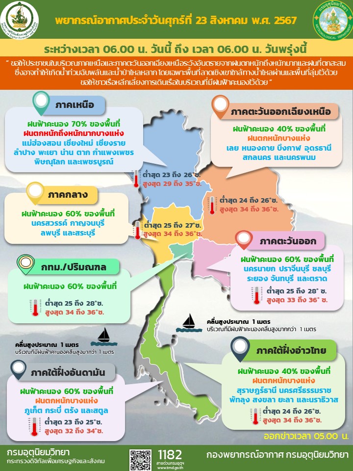 พยากรณ์อากาศรายภาค วันที่ 23 ส.ค.67
