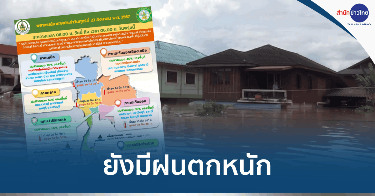 กรมอุตุนิยมวิทยา พยากรณ์อากาศ 24 ชั่วโมงข้างหน้า ร่องมรสุมพาดผ่านตอนบนของภาคเหนือและประเทศลาวตอนบน เข้าสู่หย่อมความกดอากาศต่ำบริเวณประเทศเวียดนามตอนบน ประกอบกับมีแนวพัดสอบของลมตะวันออกเฉียงใต้และลมตะวันตกเฉียงใต้ในระดับบนปกคลุมภาคตะวันออกเฉียงเหนือตอนบน ในขณะที่มรสุมตะวันตกเฉียงใต้ยังคงพัดปกคลุมทะเลอันดามัน ประเทศไทย และอ่าวไทย ลักษณะเช่นนี้ทำให้บริเวณภาคเหนือ ภาคตะวันออกเฉียงเหนือตอนบน และภาคใต้ตอนล่าง มีฝนตกหนักบางพื้นที่ โดยมีฝนตกหนักมากบริเวณภาคเหนือตอนบน ขอให้ประชาชนในบริเวณดังกล่าวระวังอันตรายจากฝนตกหนักถึงหนักมากและฝนที่ตกสะสม ซึ่งอาจทำให้เกิดน้ำท่วมฉับพลันและน้ำป่าไหลหลาก โดยเฉพาะพื้นที่ลาดเชิงเขาใกล้ทางน้ำไหลผ่านและพื้นที่ลุ่มไว้ด้วย