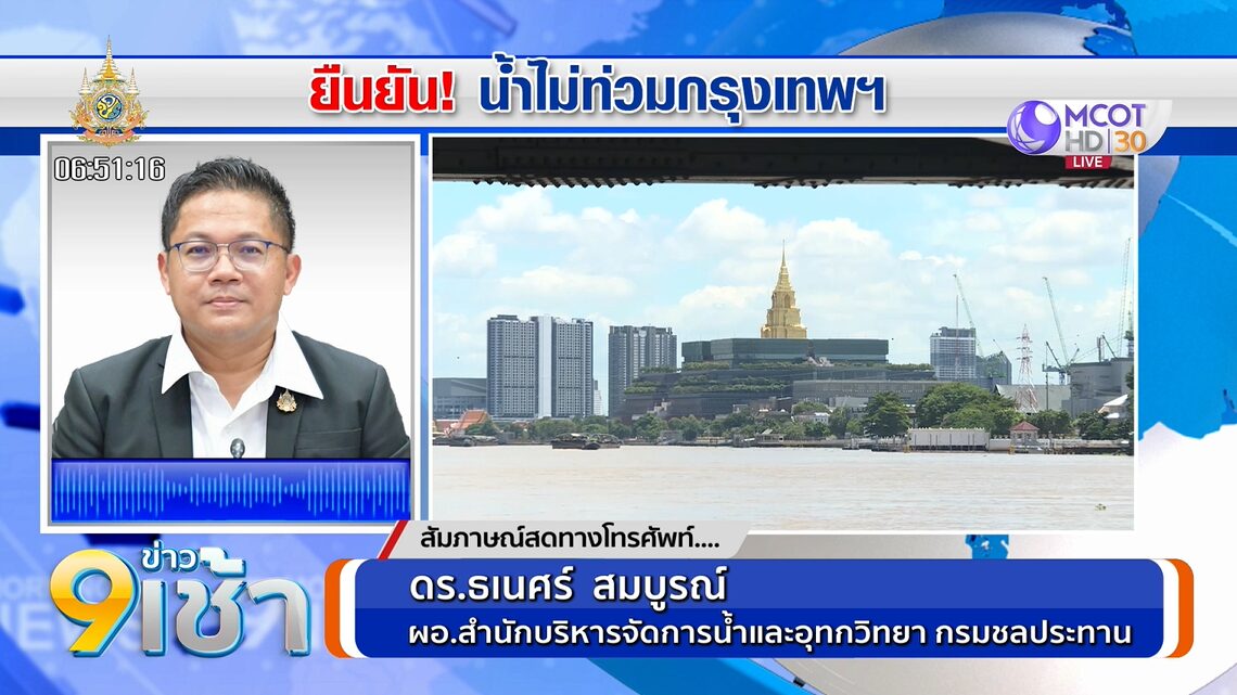 2 ก.ย. – มวลน้ำก้อนใหญ่ไหลเข้าสู่พื้นที่ลุ่มภาคกลางแล้ว กทม.-ปริมณฑล จะโดนน้ำท่วมใหญ่เหมือนปี 54 หรือไม่ พูดคุยกับ ดร.ธเนศร์ สมบูรณ์ ผอ.สำนักบริหารจัดการน้ำและอุทกวิทยา กรมชลประทาน .-สำนักข่าวไทย