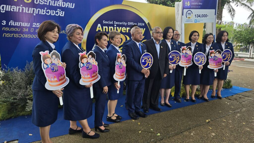 ในโอกาสนี้นายสมหมาย สุวรรณวงษ์ รองกรรมการผู้อำนวยใหญ่ สายงานตลาดและขาย บมจ.อสมท พร้อมคณะ ได้ร่วมแสดงความยินดีและร่วมสมทบทุนในกิจการสาธารณกุศลกับสำนักงานประกันสังคมในโอกาสที่สำนักงานประกันสังคมครบรอบ 34 ปี โดยมีนายสุรสิทธิ์ ศรีแก้ว รองเลขาธิการ สำนักงานประกันสังคม เป็นผู้รับมอบ