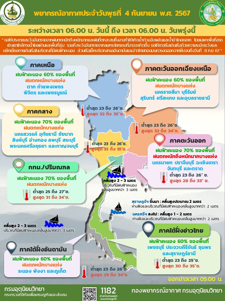พยากรณ์อากาศรายภาค วันที่ 4 ก.ย.67