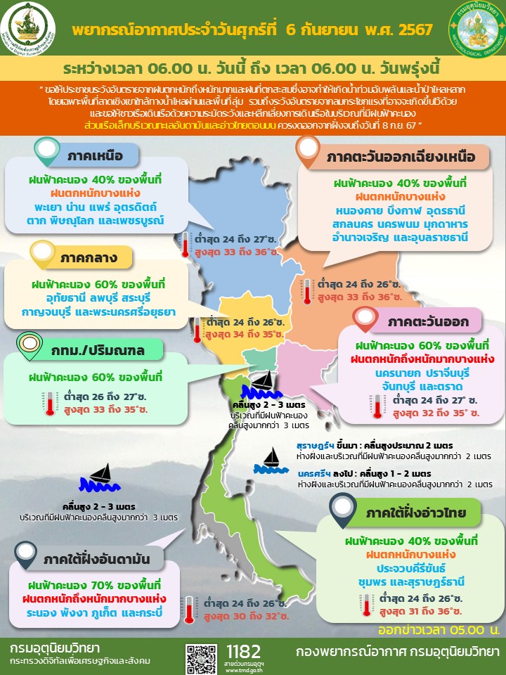 พยากรณ์อากาศรายภาค วันที่ 6 ก.ย.67