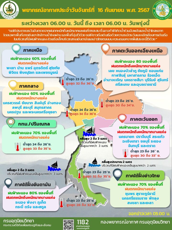 พยากรณ์อากาศรายภาค วันที่ 16 ก.ย.67