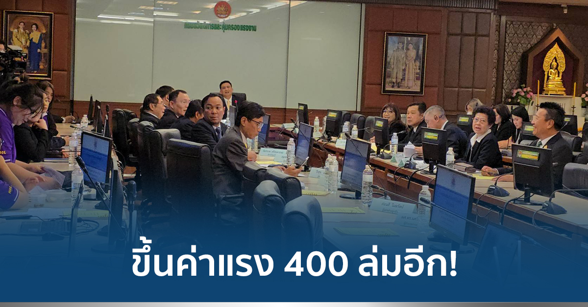 ก.แรงงานฯ 20 ก.ย. – “บอร์ดไตรภาคี” ล่มรอบ 2 ลงมติปรับขึ้นค่าจ้างขั้นต่ำ 400 บาท ไม่ได้ เหตุองค์ประชุมไม่ครบ หลังติดภารกิจด่วน ขณะที่ฝ่ายนายจ้าง เข้าร่วมประชุมครบ
